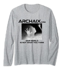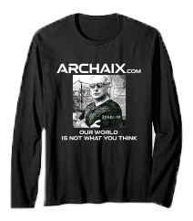 Long Sleeve T-shirt: Our World Is Not What You Think Archaix Youtube Facebook Instagram Telegram Mail Black Font T-shirt White Font T-shirt