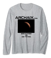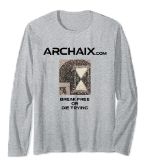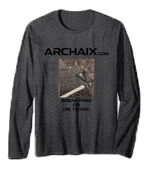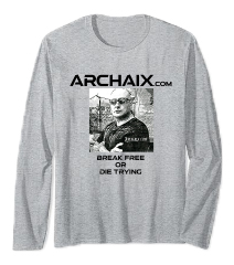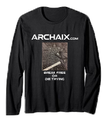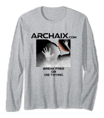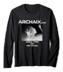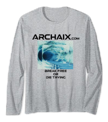 Long Sleeve T-shirt: Break free or die trying Archaix Youtube Facebook Instagram Telegram Mail Black Font T-shirt White Font T-shirt
