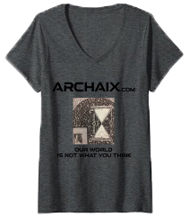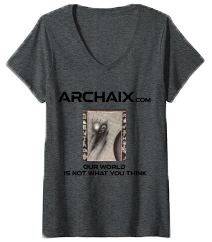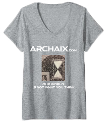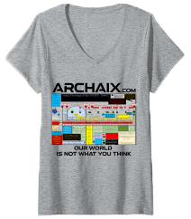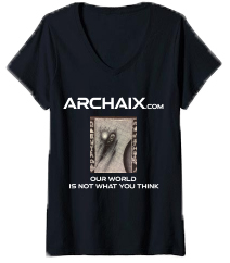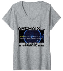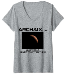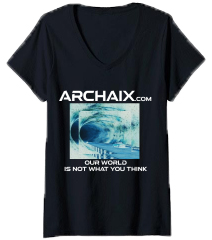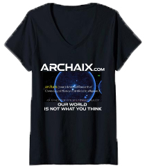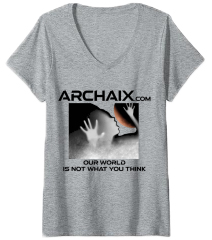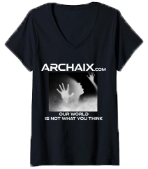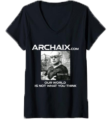 V-neck: Our World Is Not What You Think Archaix Youtube Facebook Instagram Telegram Mail Black Font T-shirt White Font T-shirt