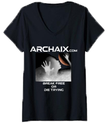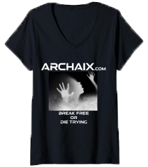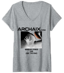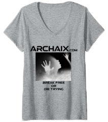 U.K. V-neck: Break Free Or Die Trying Archaix Youtube Facebook Instagram Telegram Mail Black Font T-shirt Black Font T-shirt